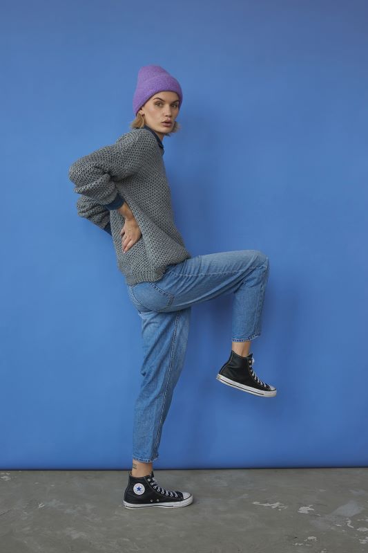 LOOK NO1 to zestaw z serii #urbanoutfits.  Połączyliśmy ze sobą BABBA BEANIE VERI PERI z swetrem OVERSIZE SWEATER GREY. Dobra baza z świeżym kolorem. Efekt rebel.